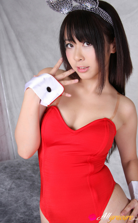 Rin Yoshino Asian is erotic bunny in black and red lingerie