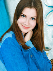 A sweet, ever-smiling face with the girl-next-door appeal, Marta E confidently poses, showcasing her gorgeous, curvy body with magnificent pair of pink and puffy breasts, elegantly sweeping hips, and smooth legs encases in thigh-high white stockings.