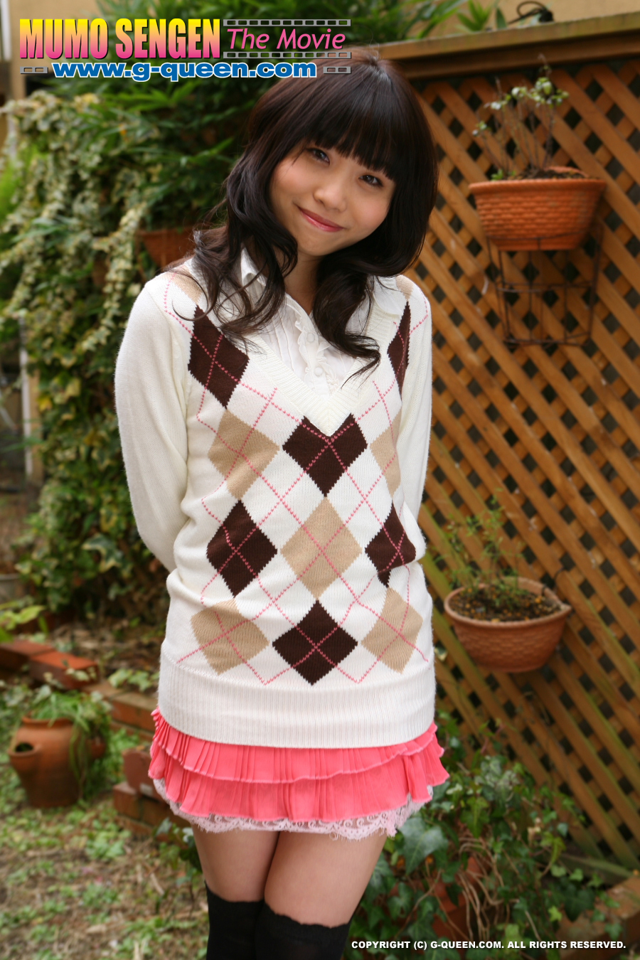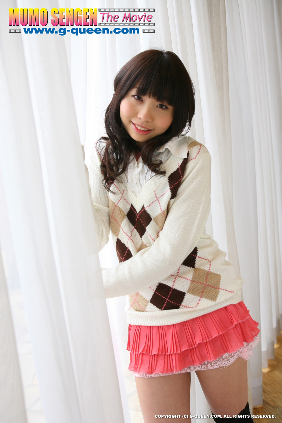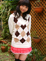 Miki undress her pink panties and demonstrates smooth vagina
