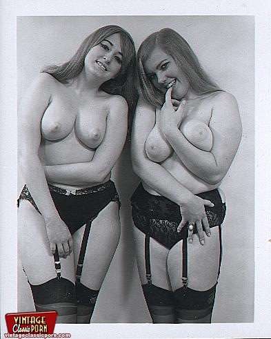 Hairy vintage voluptuous ladies posing in stocking