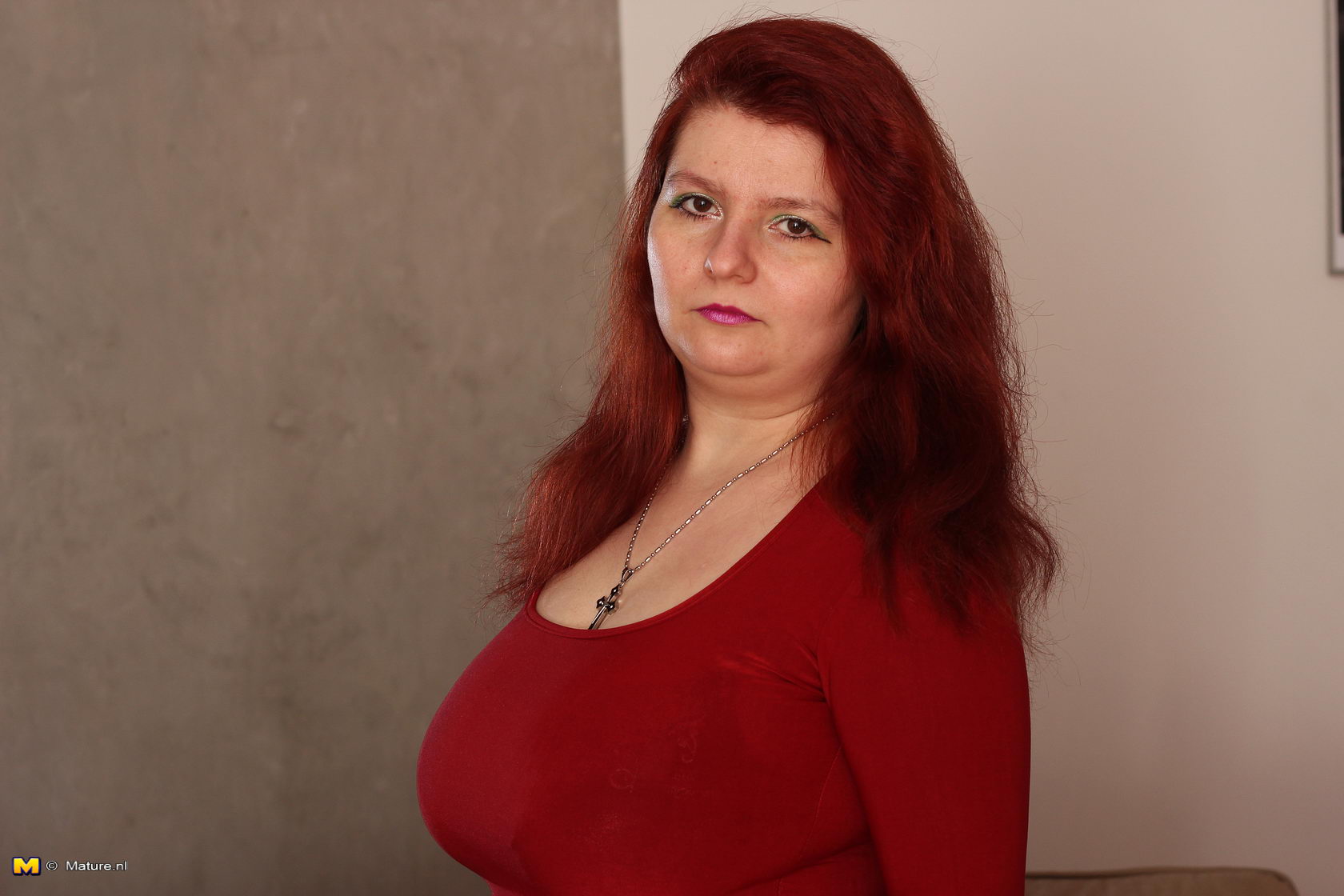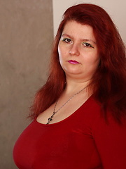 Big redhead woman puts her finger into own wet hole